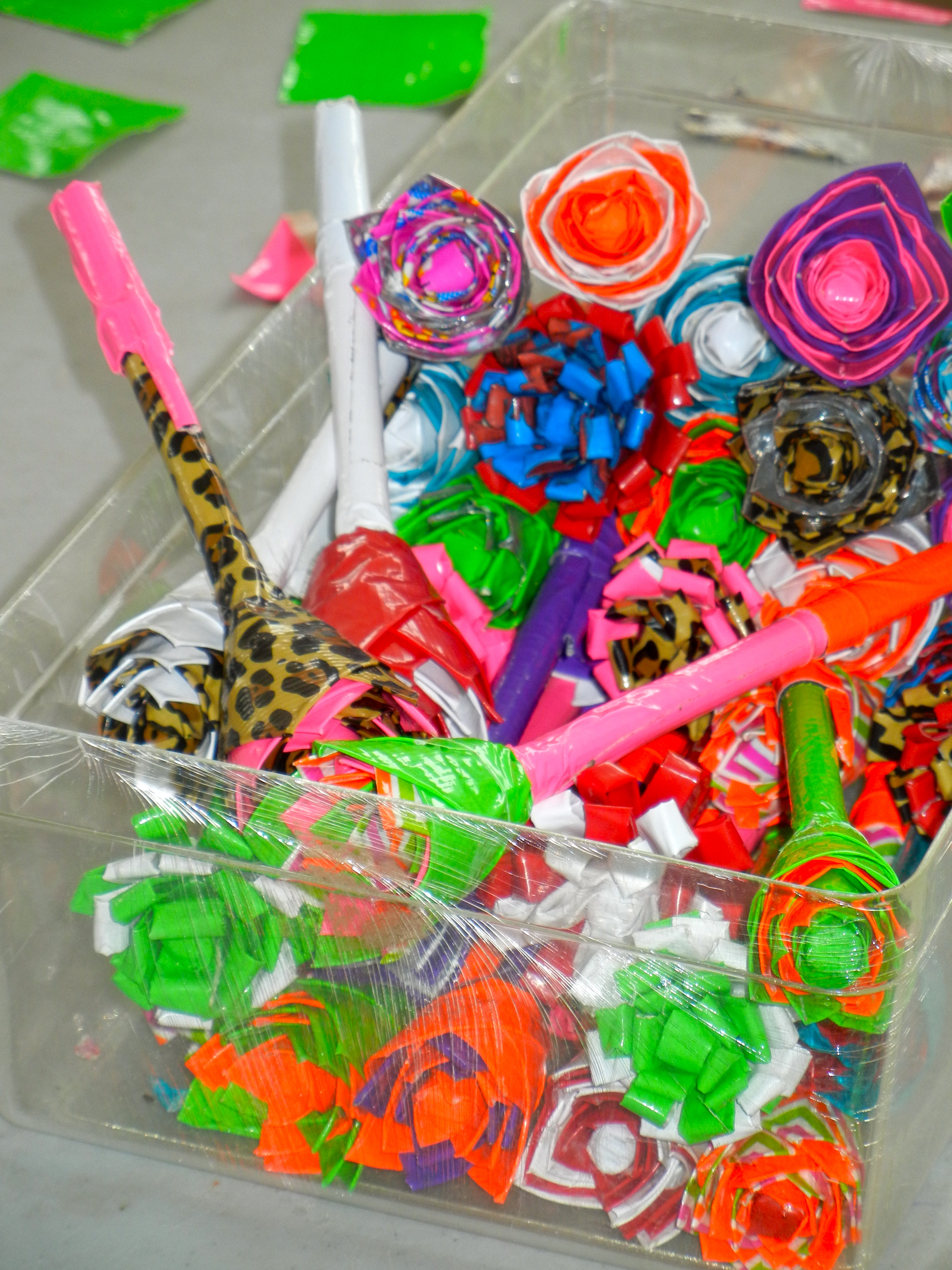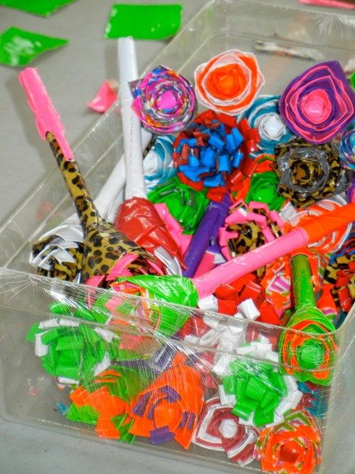 Aside from ViBella keeping me busy, this past week we have started yet another new and exciting project. I had two friends from home visit this past week. A mom and a daughter. To raise money, Kendra, a 10-year-old, made over 450 pens decorated in duct tape. Half-way through their visit, we realized we had a business opportunity right under our nose. So, this past Tuesday, Kendra and Joni taught 13 teenage girls in Simonette how to make duct tape pens. Today we finished all the supplies that we currently have, so among all of the ViBella business, I spent time correcting and directing, laughing and smiling with girls who are so excited about their new job. (More to come on this project in a few weeks after we get it running and more supplies come….stay tuned π )