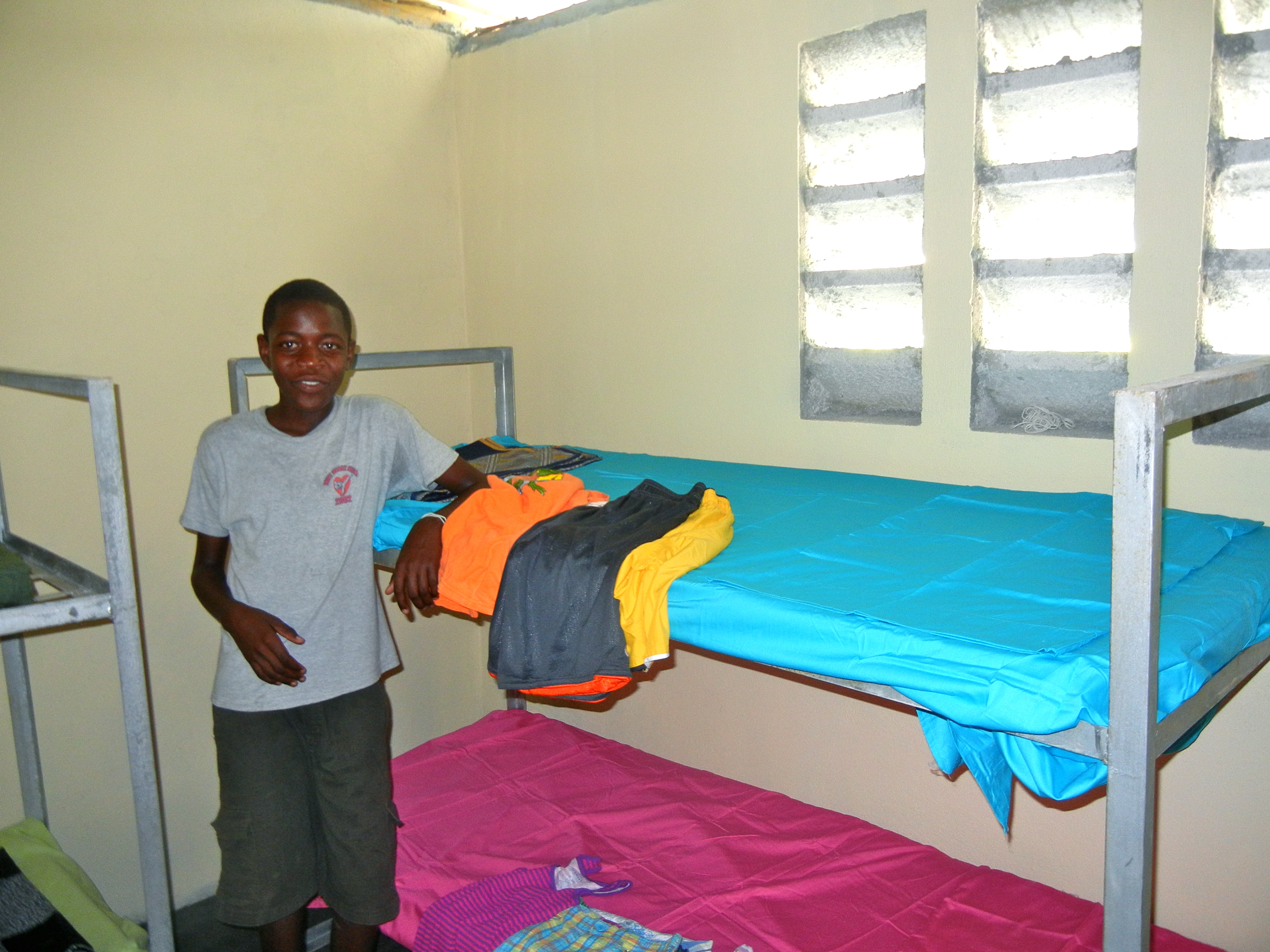 Sonson, age 11, with his very first bed to sleep on