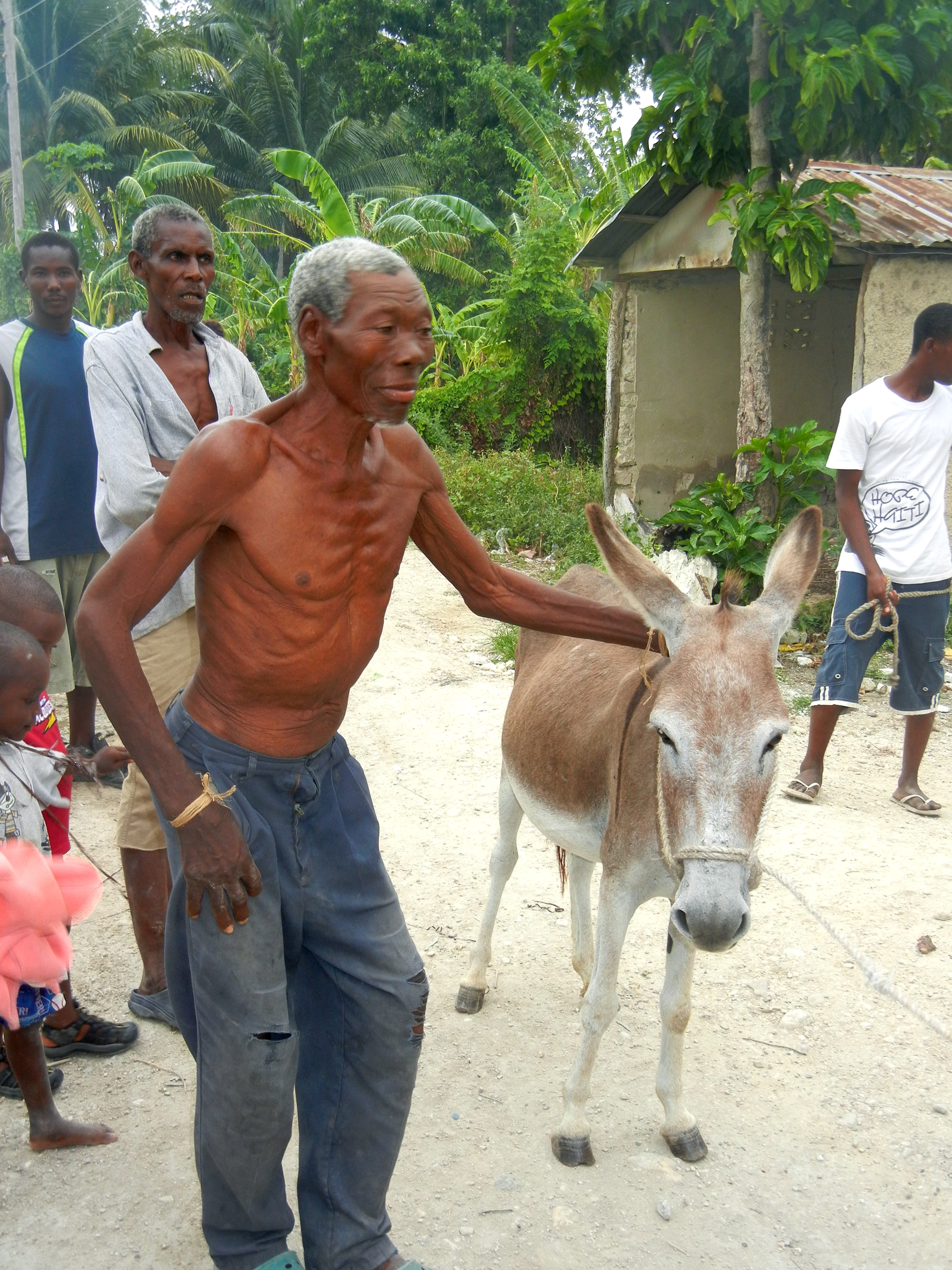 Then there would be times that we would meet along the dirt path. He probably weighed no more than 95 pounds and only 5.5 feet tall. I would embrace him and feel all the bones in his back. He would kiss me on the cheek and ask, “kijan ti bourik ou ye?” how’s your little donkey? We first became friends when I bought my little donkey from him. We danced the night away the night of my wedding, and he would later tell Webert, he had never been to such a party in life. And, I know all the wedding guests noticed his child-like joy.